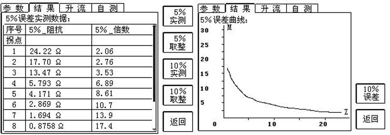 滿足5%(10%)誤差前提下最大允許的二次阻抗值,通常要求實(shí)測(cè)值遠(yuǎn)小于計(jì)算值(誤差曲線),若不滿足要求可能出現(xiàn)誤差過(guò)大,保護(hù)誤動(dòng)。