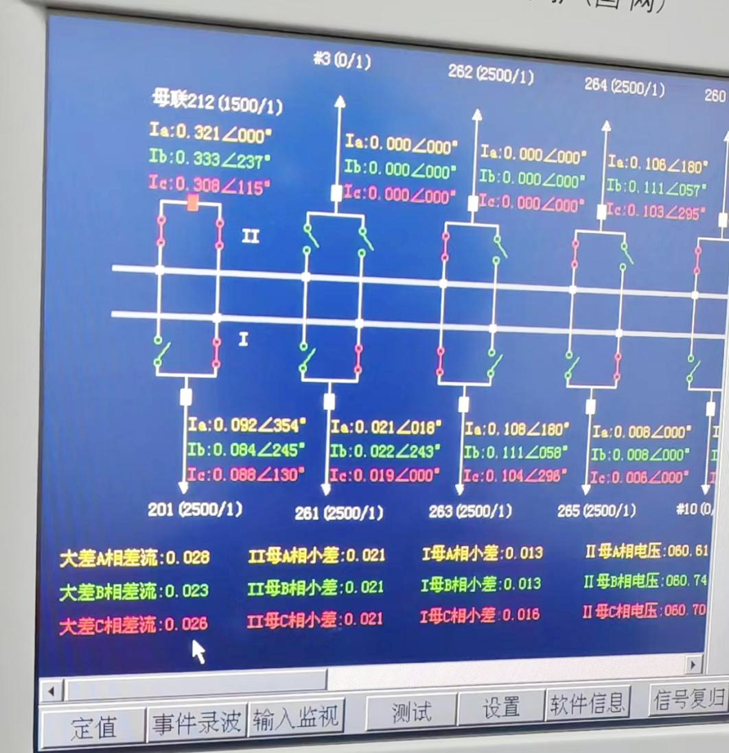 短接前262間隔二次電流值為0.026A左右,換算成一次值約為65A,大差為0.01,Ⅱ母小差大約為0.003,Ⅰ母小差為0.013。