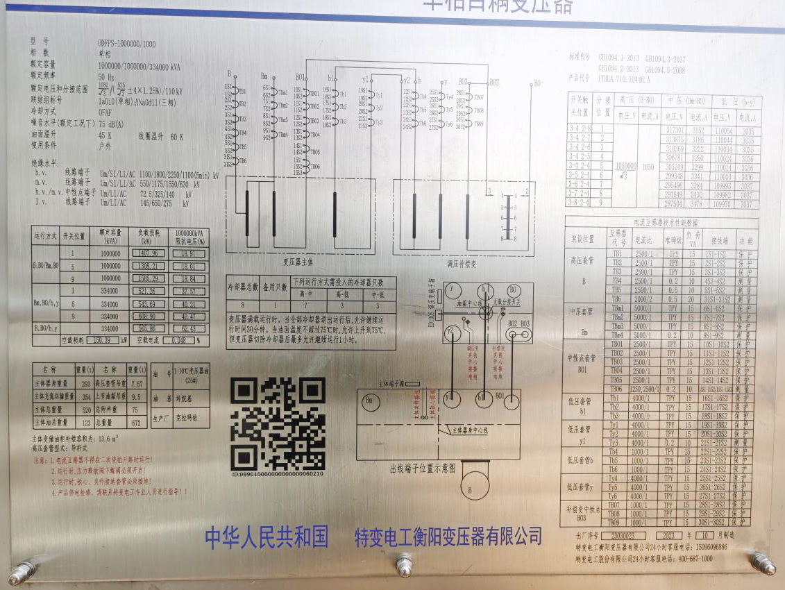 本次進(jìn)行試驗(yàn)的變壓器是三臺1000MVA的分相變壓器,高中低三側(cè)電壓為1000/√3kV、525/√3kV、110kV。