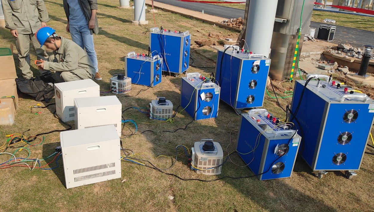 變電站新建與改造時,CT、PT安裝后需進(jìn)行極性測試以保證送電后正常運(yùn)行。 對于阻抗較大的變壓器(如1000kV超高壓變壓器),武漢豪邁提出電容補(bǔ)償新方法,研發(fā)生產(chǎn)了HTB-8000 大型變壓器一次通流試驗(yàn)裝置,在對試驗(yàn)電源要求不高的條件下,大幅提高輸出的試驗(yàn)電流和輸出功率,實(shí)現(xiàn)對大型變壓器進(jìn)行一次側(cè)大電流通流試驗(yàn),可穿過變壓器對兩側(cè)進(jìn)行通流試驗(yàn)(對側(cè)短接),對變壓器兩側(cè)一次回路進(jìn)行通流通壓試驗(yàn)。