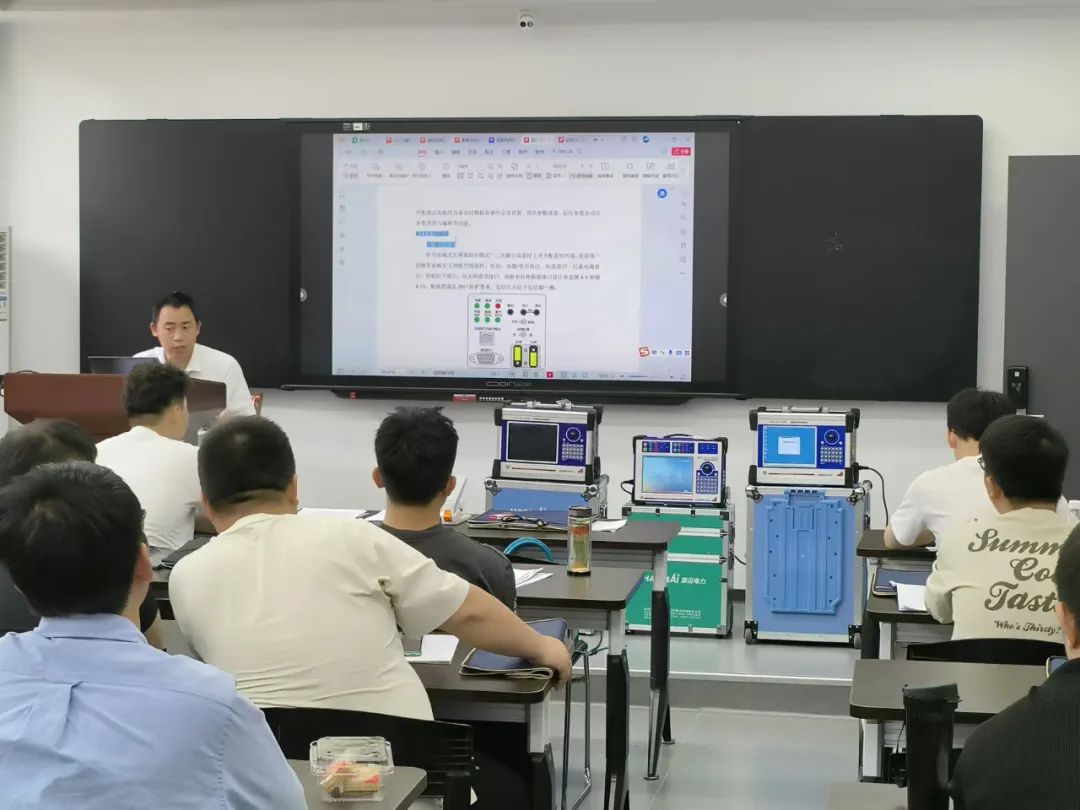 各參賽單位高度重視此次競(jìng)賽,精心準(zhǔn)備,在比賽前進(jìn)行了緊張有序的集中訓(xùn)練。 武漢豪邁接到多個(gè)參賽單位的培訓(xùn)邀請(qǐng),制定了科學(xué)的培訓(xùn)方案,將理論知識(shí)與實(shí)戰(zhàn)演練相結(jié)合,精選培訓(xùn)內(nèi)容,涵蓋配電終端、配電自動(dòng)化終端測(cè)試設(shè)備、常見問題及注意事項(xiàng)等方面,并且著重講解了本次競(jìng)賽指定測(cè)試設(shè)備——配電之星P2200A5 配電自動(dòng)化終端測(cè)試儀。 為了讓選手們?cè)鷮?shí)掌握要領(lǐng),熟練操作設(shè)備,培訓(xùn)過(guò)程中我司技術(shù)人員現(xiàn)場(chǎng)模擬試驗(yàn)環(huán)境,使用配電之星-P2200A5 對(duì)配電終端進(jìn)行調(diào)試演示,耐心細(xì)致地解答選手們?cè)趯W(xué)習(xí)演練過(guò)程中遇到的問題,幫助選手們實(shí)現(xiàn)操作技能和應(yīng)變能力的全面提升。