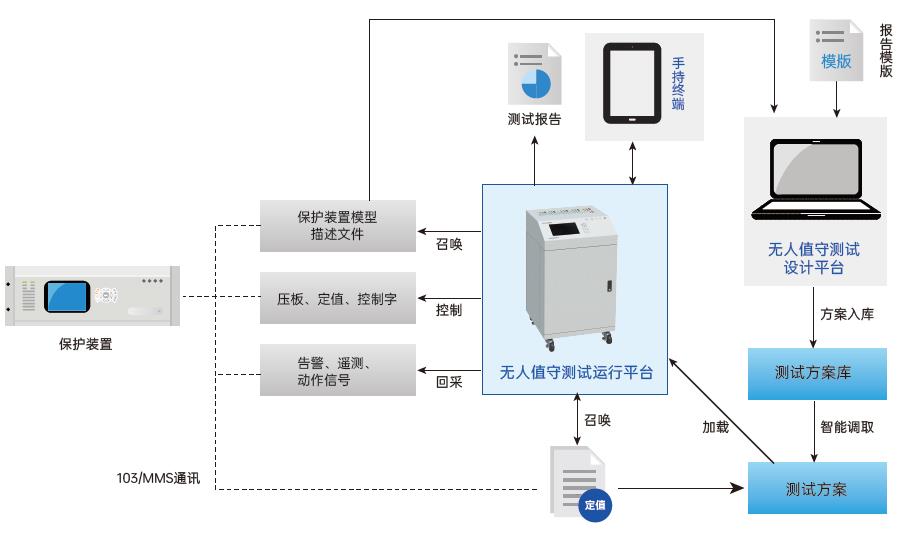 2)自動測試,無需人工干預,和保護裝置通訊采集數(shù)據(jù),形成閉環(huán);