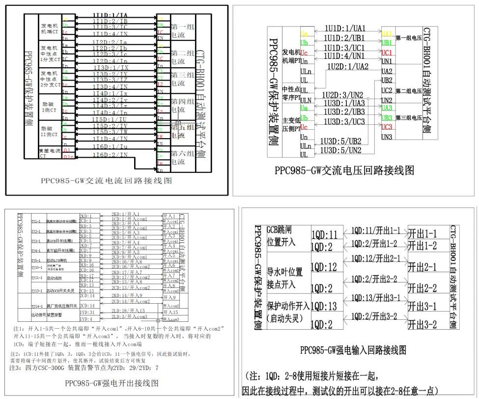 1)電流/電壓試驗線以及開入開出航插線連接發(fā)變組保護和繼電保護測試儀,用于向保護裝置加量。 用網(wǎng)線、交換機連接至測試儀的聯(lián)機口用于回采動作、遙測信息、召喚保護定值等。