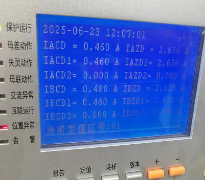 △ 短接后I-II母母線保護1號屏差流顯示值