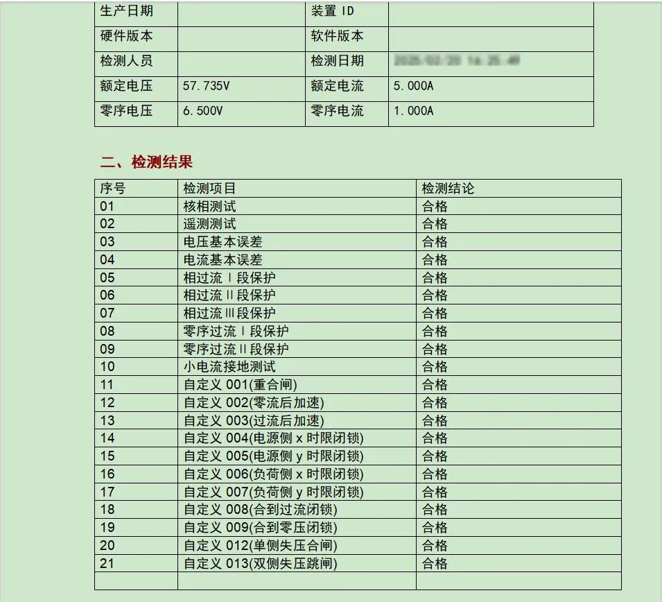 通訊建立后點(diǎn)擊“進(jìn)入檢測(cè)”,再點(diǎn)擊“開(kāi)始測(cè)試”即開(kāi)始一鍵自動(dòng)測(cè)試,若測(cè)試過(guò)程中存在個(gè)別未完成項(xiàng)目,可等待自動(dòng)測(cè)試完成后進(jìn)行單相測(cè)試,所有測(cè)試全部完成后,點(diǎn)擊生成報(bào)告。