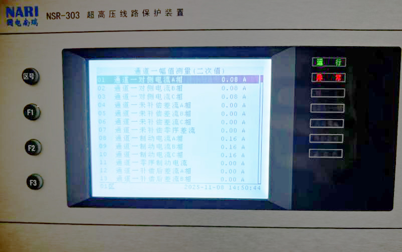 待電流升起來(lái)后在保護(hù)裝置查看采樣信息。